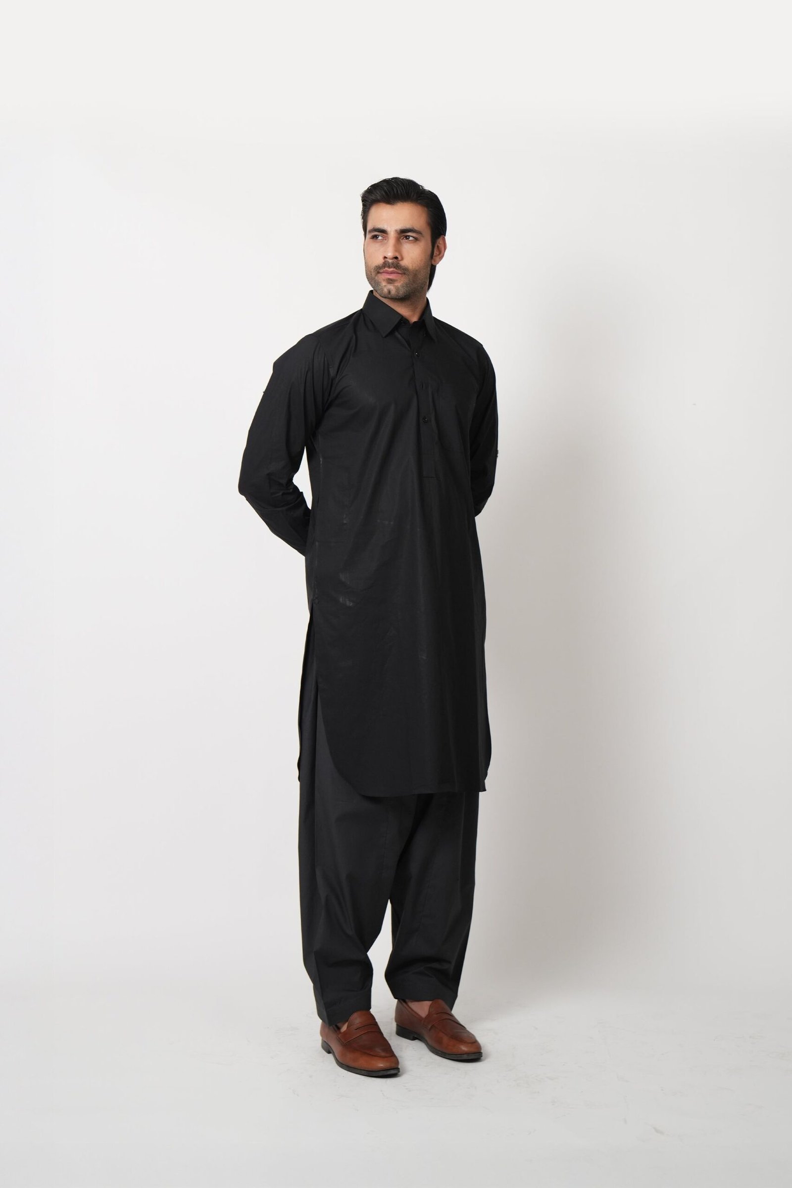 SHALWAR KAMEEZ BLACK (collar gol daman)